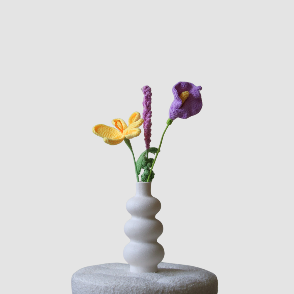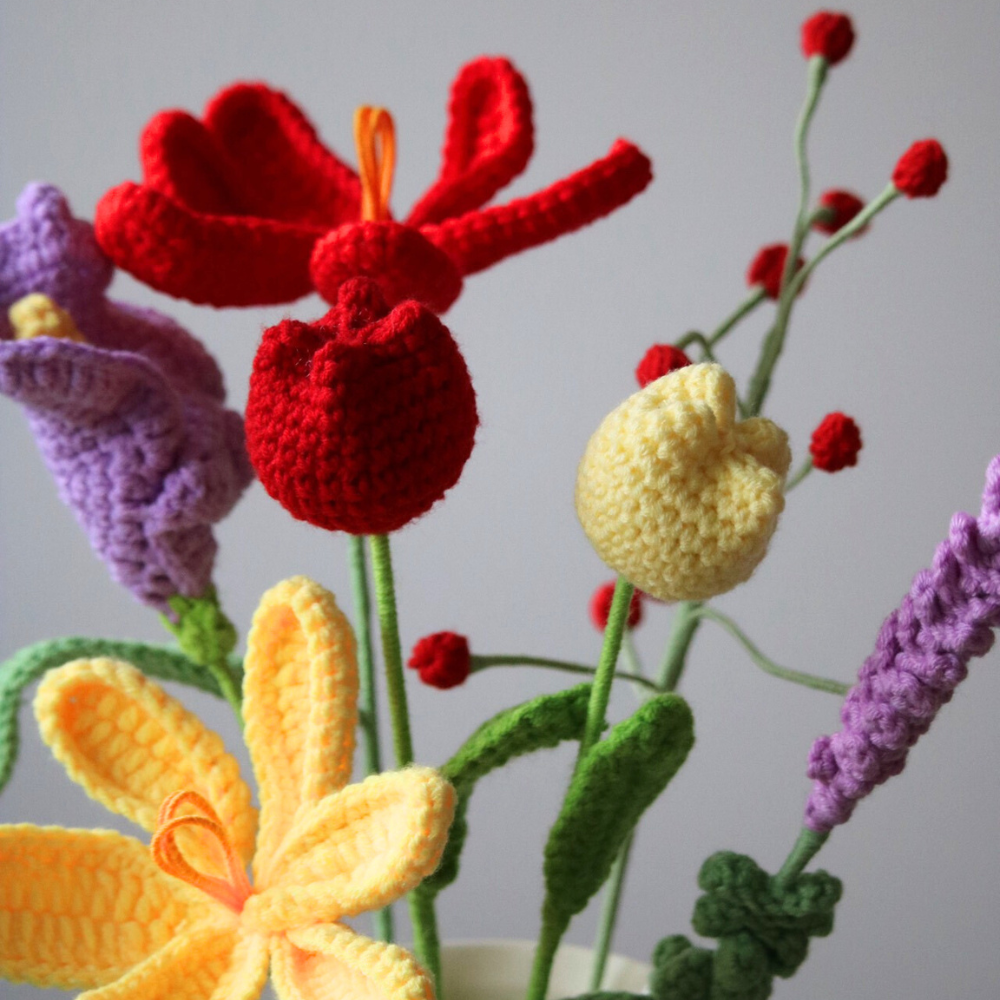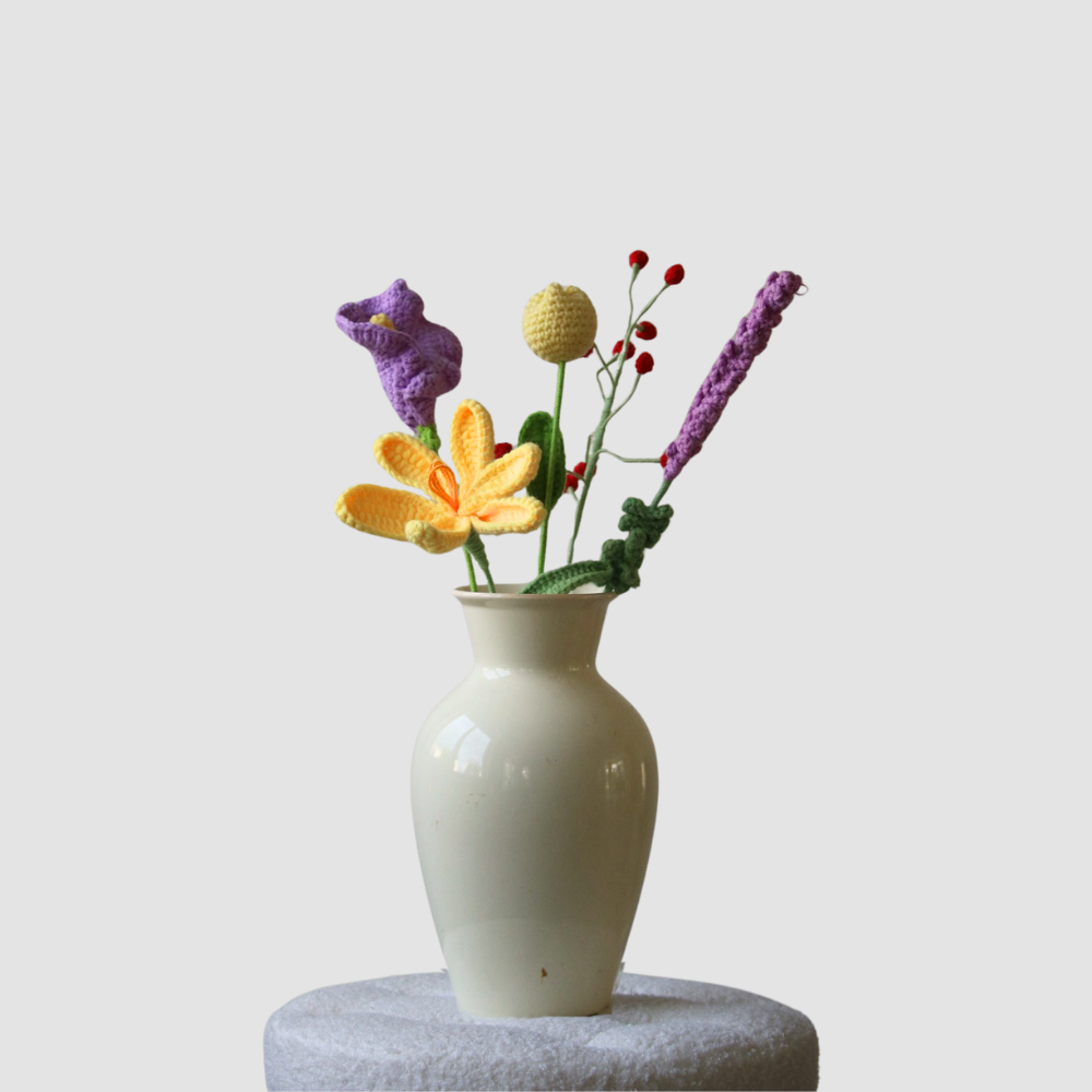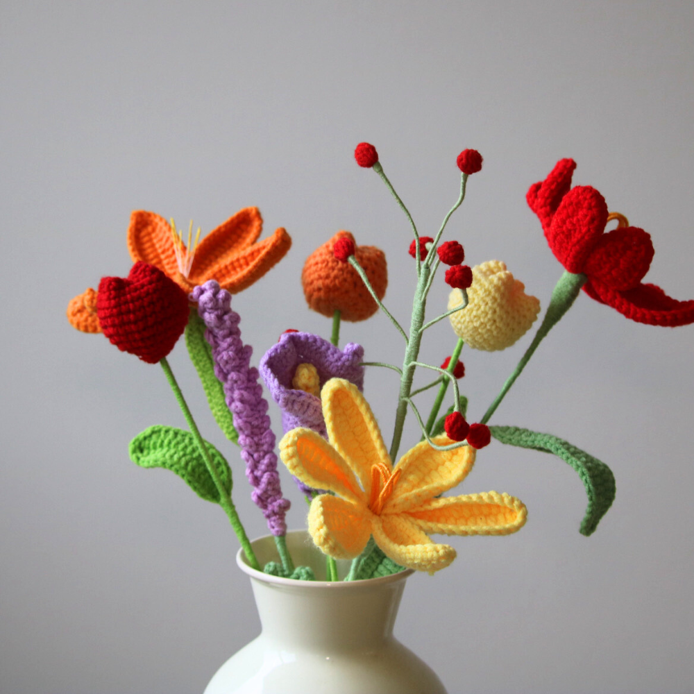 Boeket Betty is een kleurrijk boeket dat vrolijkheid en warmte in elke ruimte brengt. De gehaakte bloemen in tinten geel, rood, paars en oranje vormen samen een prachtig symbool van zorg, liefde en verwennerij. Geen verwelking, alleen blijvende betekenis en dankbaarheid — een boeket dat het hart raakt.
