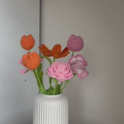Het gehaakte wollen boeket Valeria is samengesteld om iedereen op te vrolijken. De combinatie van de kleuren oranje en roze... Lees meer