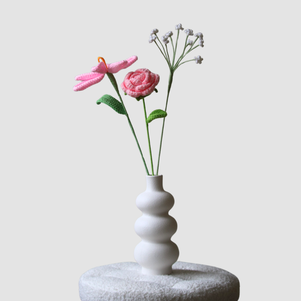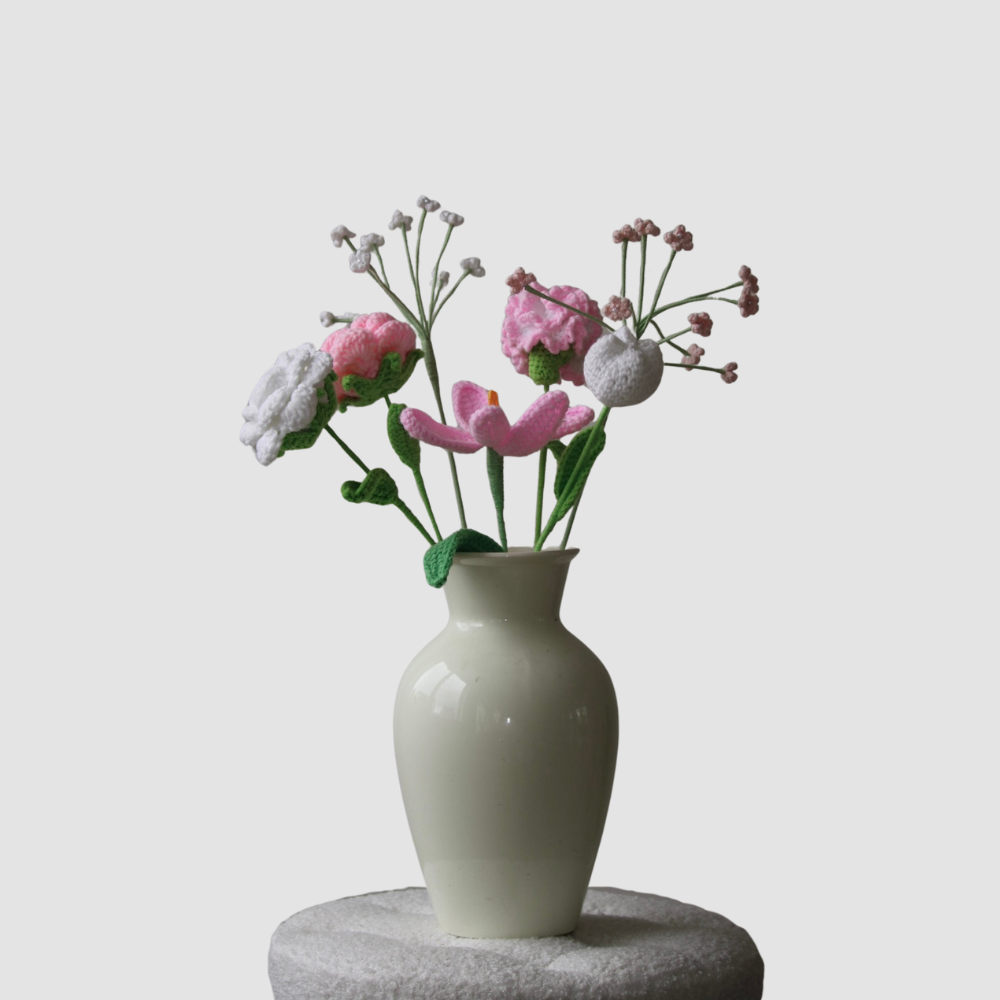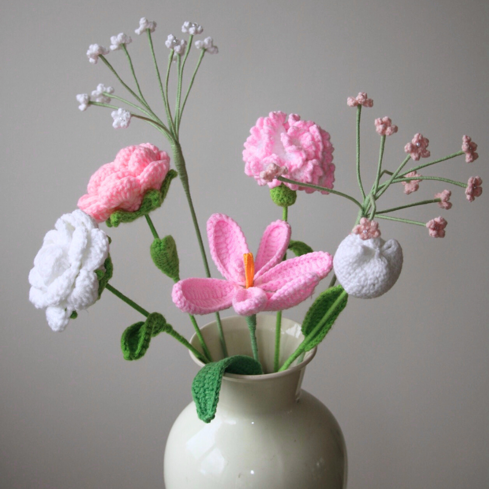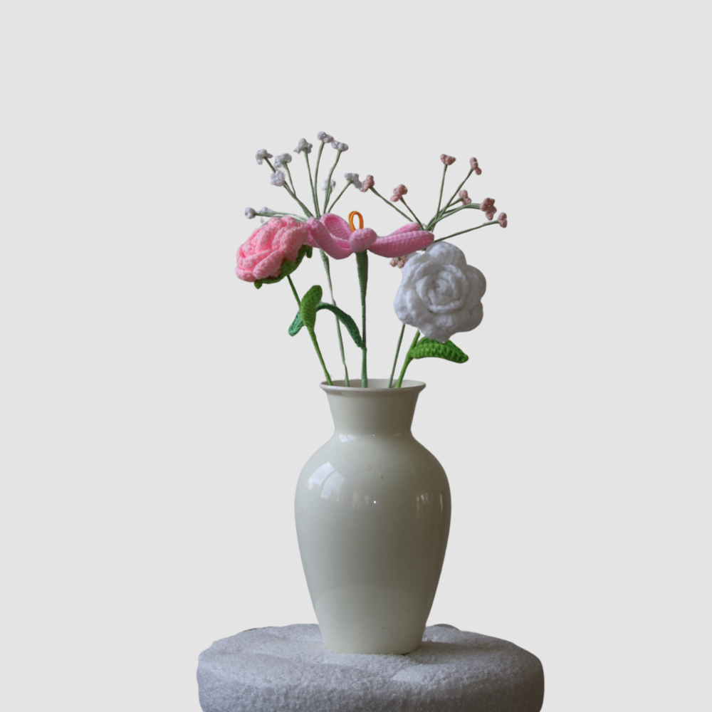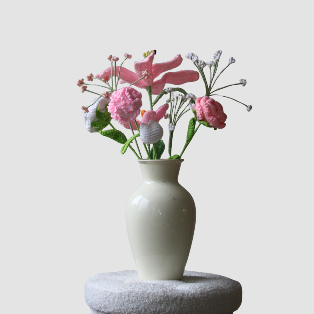 Medium (7): Roze roos, Witte roos, Roze hibiscus, Witte vergeet-me-nietje, Roze vergeet-me-nietje, Witte tulp, Roze anjer