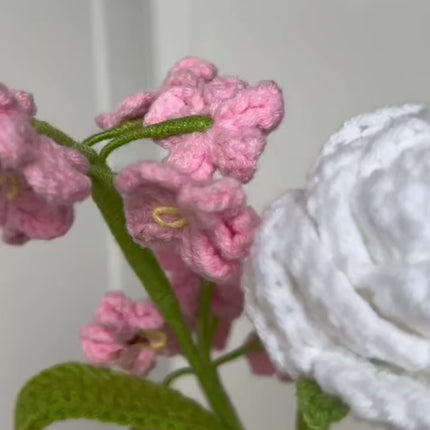 Het Boeket Victoria is een stijlvol en sprookjesachtig gehaakt boeket dat bestaat uit 3 witte rozen en 4 Vergeet-me-nietjes. De... Lees meer